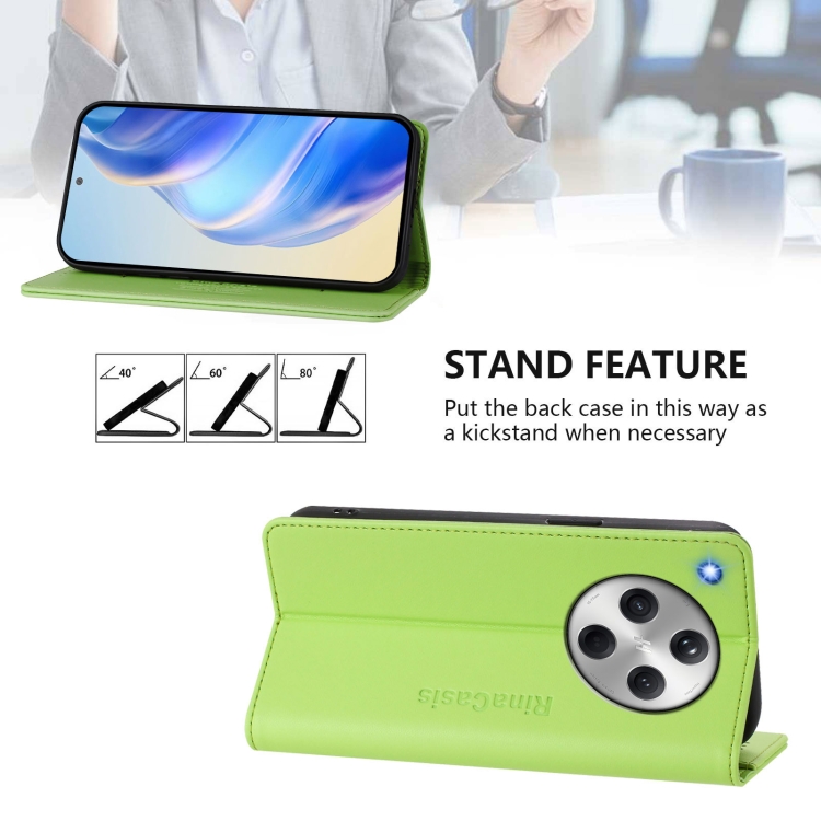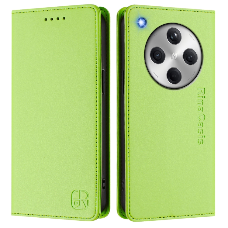 Funda de Cuero Rfid con Doble Pliegue y Succión Magnética para Oppo Find X8 Rc01 (Verde Hierba)