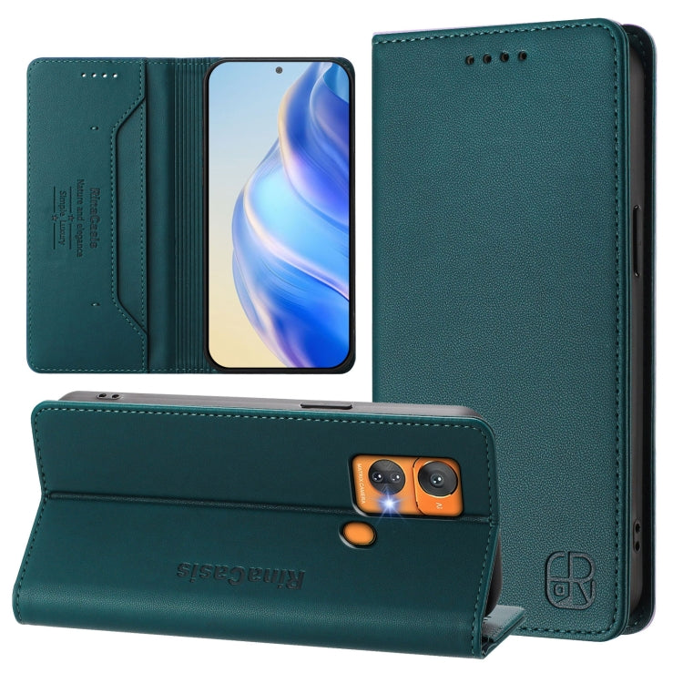 Funda de Cuero Rfid para Oukitel C33 Rc01 con Doble Pliegue y Succión Magnética (Verde Oscuro)