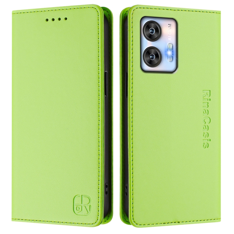 Funda de Cuero Rfid con Doble Pliegue y Succión Magnética para Oukitel C35 Rc01 (Verde Hierba)