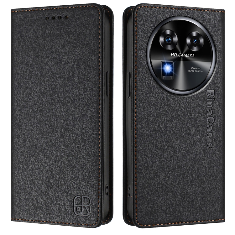 Funda de Cuero Rfid con Doble Pliegue y Succión Magnética para Oukitel C37 Rc01 (Negra)
