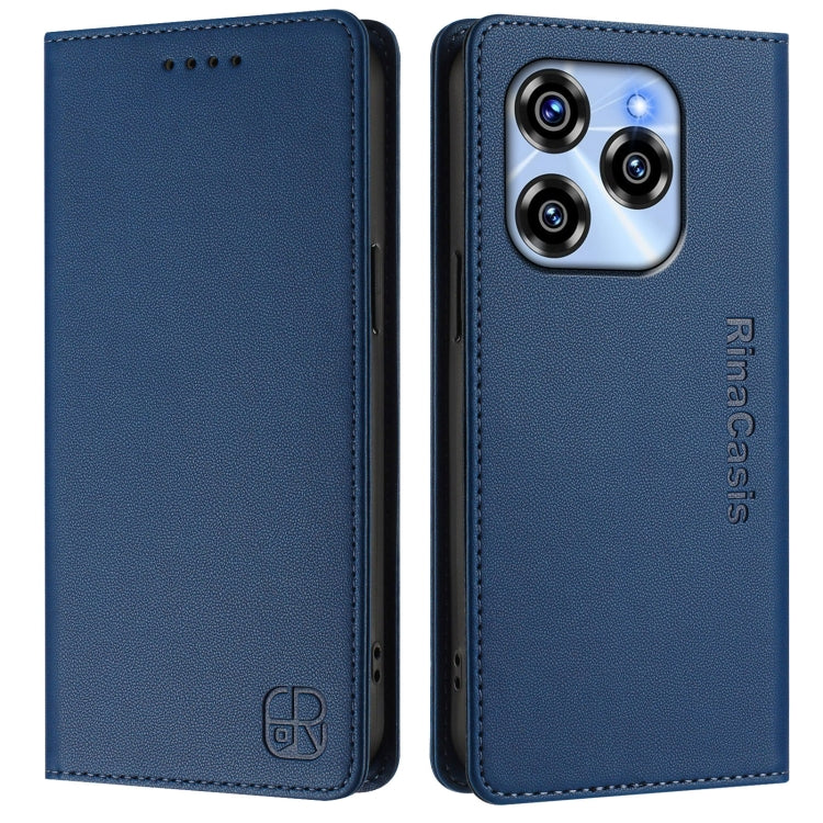 Funda de Cuero Rfid con Doble Pliegue y Succión Magnética para Oukitel C50 Rc01 (Azul Oscuro)