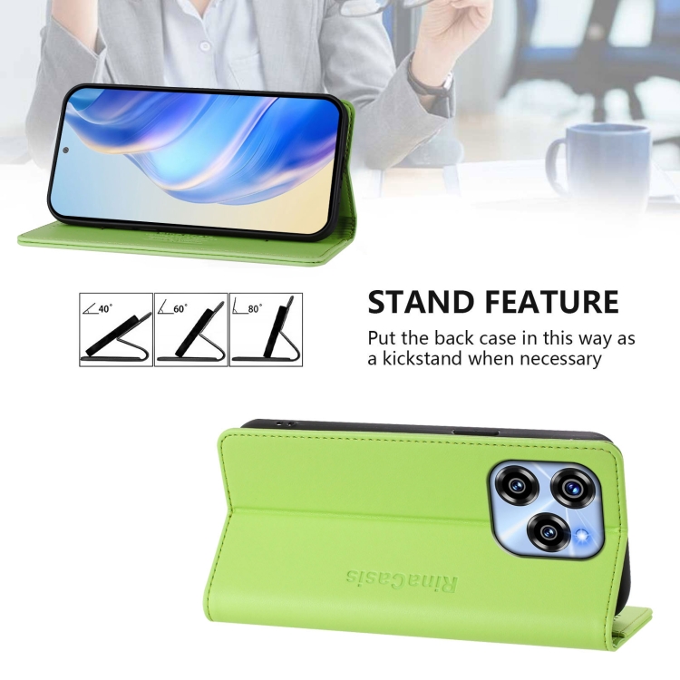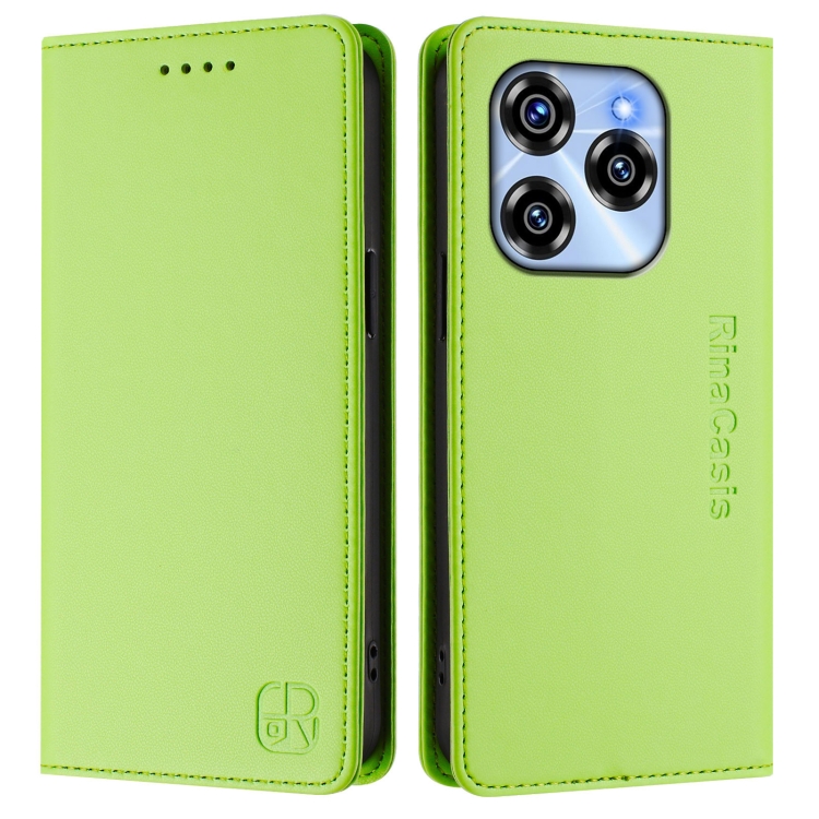 Funda de Cuero Rfid con Doble Pliegue y Succión Magnética para Oukitel C50 Rc01 (Verde Hierba)