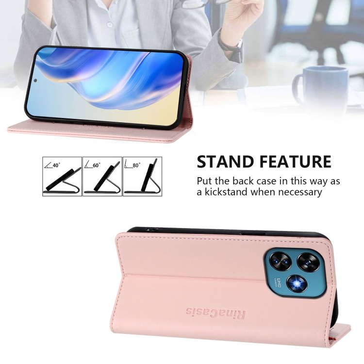 Funda de Cuero Rfid con Doble Pliegue y Succión Magnética para Oukitel C51 Rc01 (Rosa)
