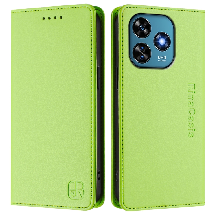 Funda Cuero Rfid con Doble Pliegue y Succión Magnética para Oukitel C51 Rc01 (Verde Hierba)