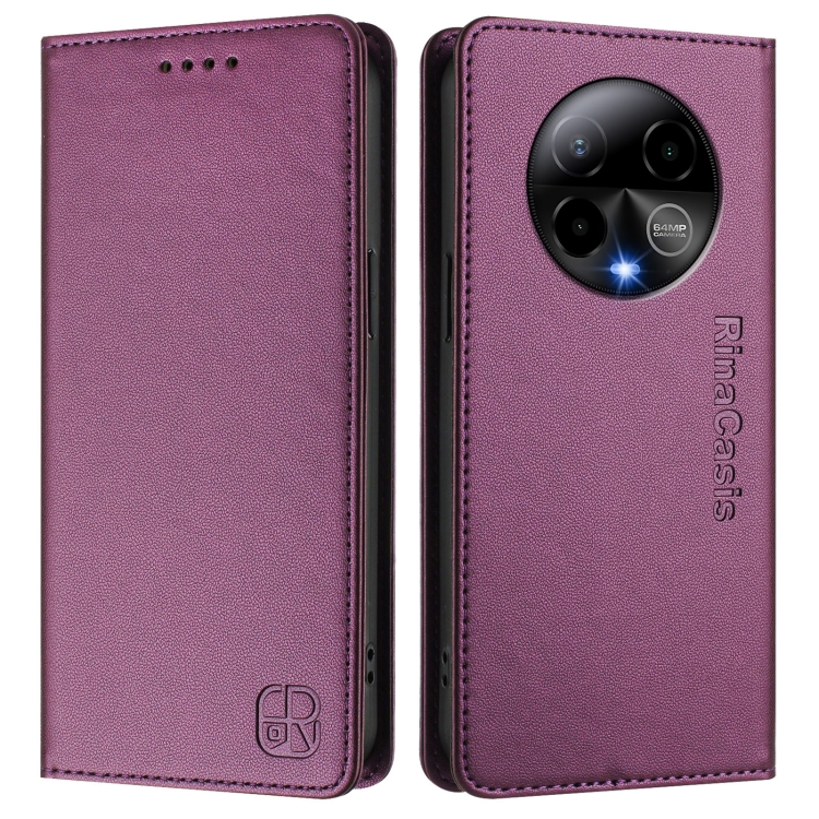 Funda de Cuero RFID con Doble Pliegue y Succión Magnética para Teléfono Blu Bold K50 Rc01 (Violeta)