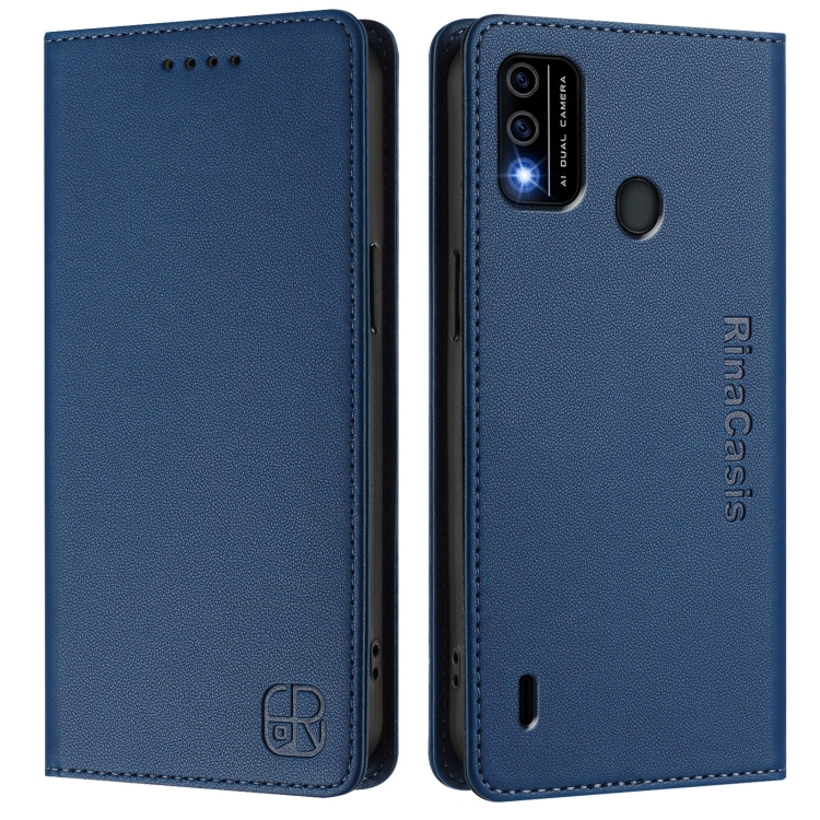 Funda de Cuero Rfid para Teléfono Itel A48 Rc01 con Doble Pliegue y Succión Magnética (Azul Oscuro)