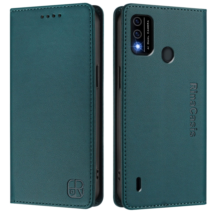 Funda de Cuero Rfid para Teléfono Itel A48 Rc01 con Doble Pliegue y Succión Magnética (Verde Oscuro)