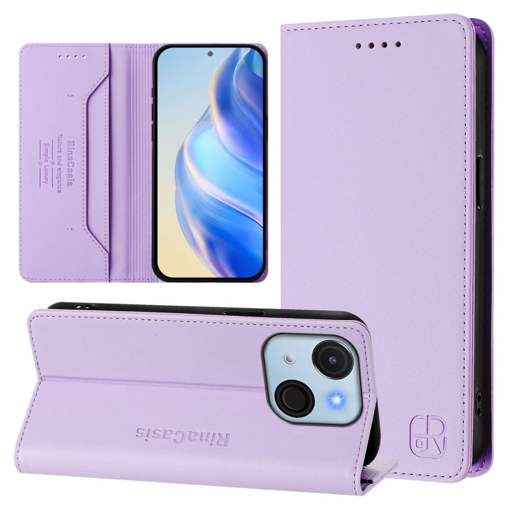 Funda de Cuero Rfid para Teléfono Itel A50C Rc01 con Doble Pliegue y Succión Magnética (Morado Claro)