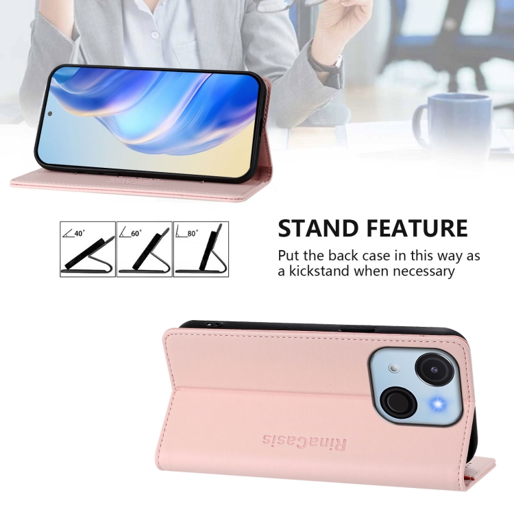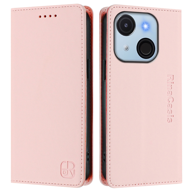 Funda de Cuero Rfid para Teléfono Itel A50C Rc01 con Doble Pliegue y Succión Magnética (Rosa)