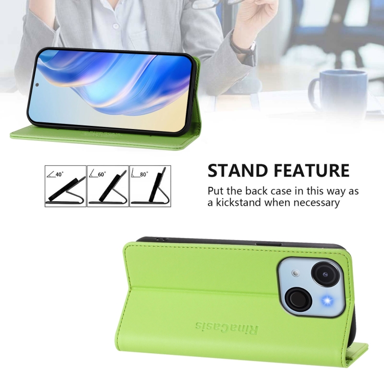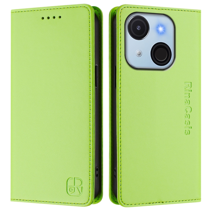Funda de Cuero Rfid para Teléfono Itel A50C Rc01 con Doble Pliegue y Succión Magnética (Verde Hierba)