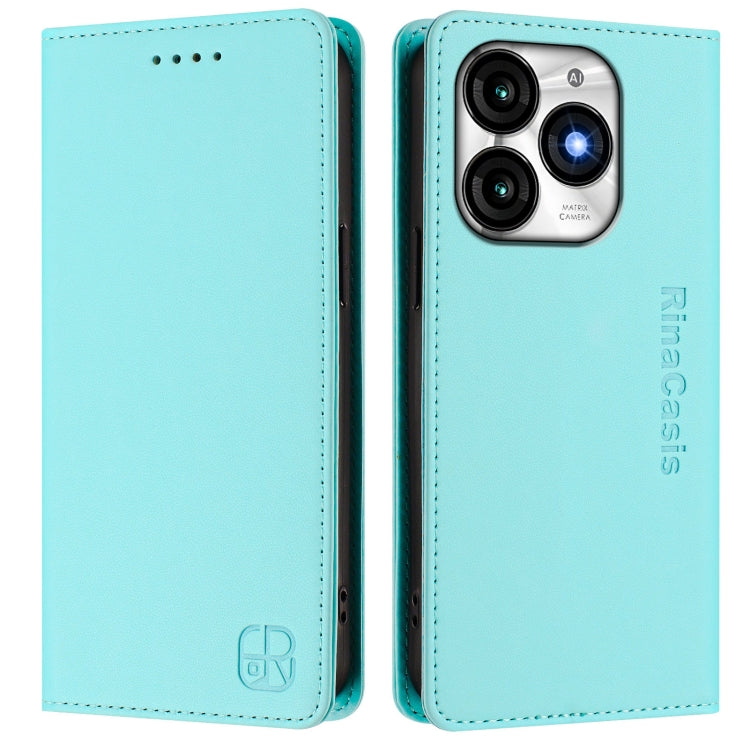 Funda de Cuero Rfid para Teléfono Itel A70 Rc01 con Doble Pliegue y Succión Magnética (Verde Menta)