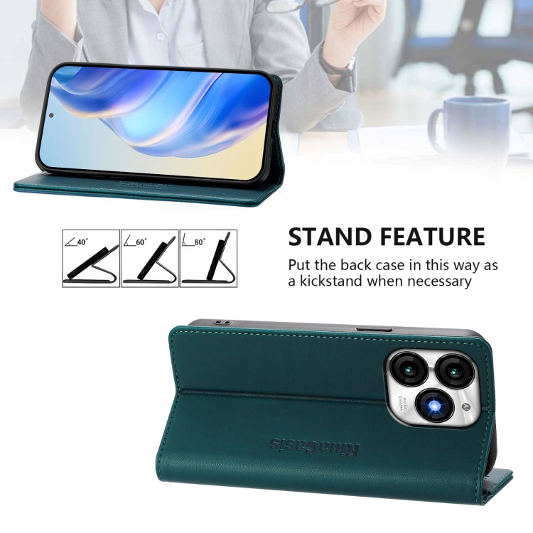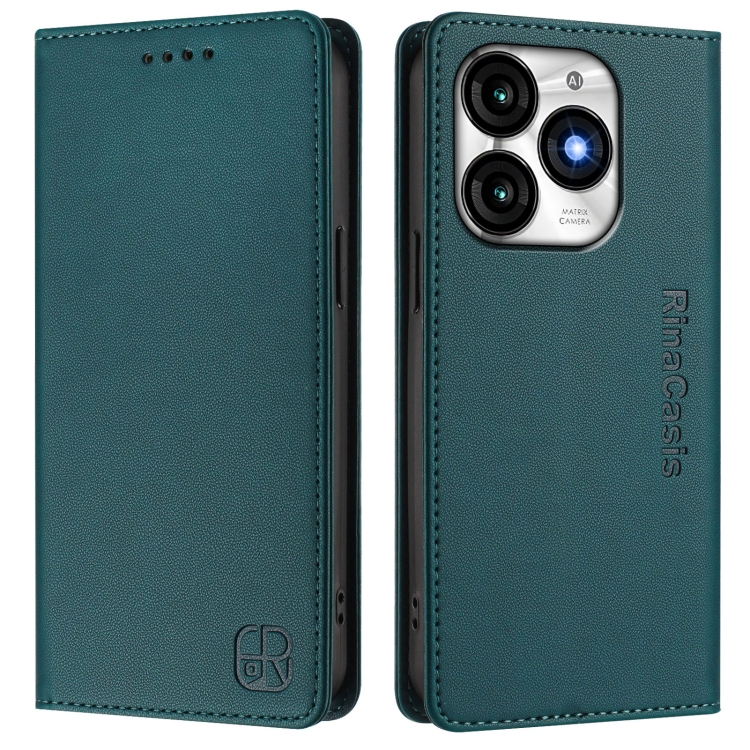 Funda de Cuero Rfid para Teléfono Itel A70 Rc01 con Doble Pliegue y Succión Magnética (Verde Oscuro)