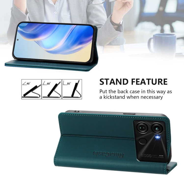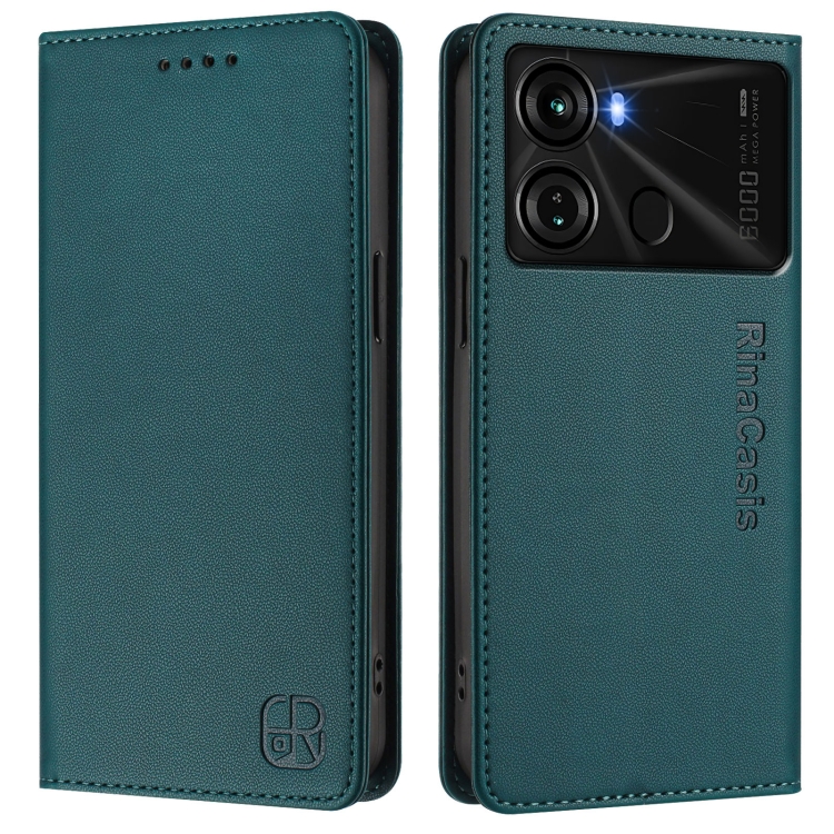 Funda de Cuero RFID con Doble Pliegue y Succión Magnética para Itel P40 Rc01 (Verde Oscuro)