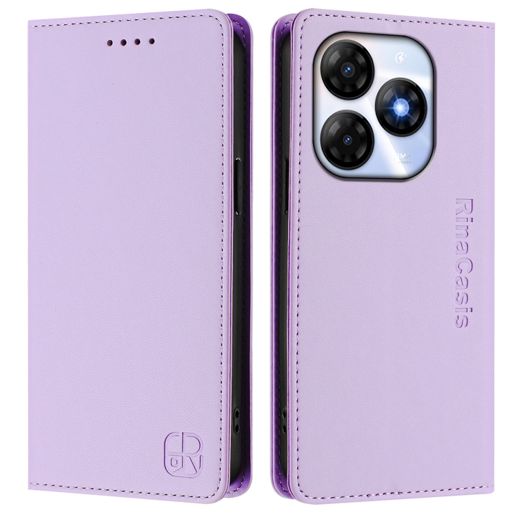 Funda de Cuero Rfid con Doble Pliegue y Succión Magnética para Itel P55 4G e Infinix Smart 8 Rc01 (Morado Claro)