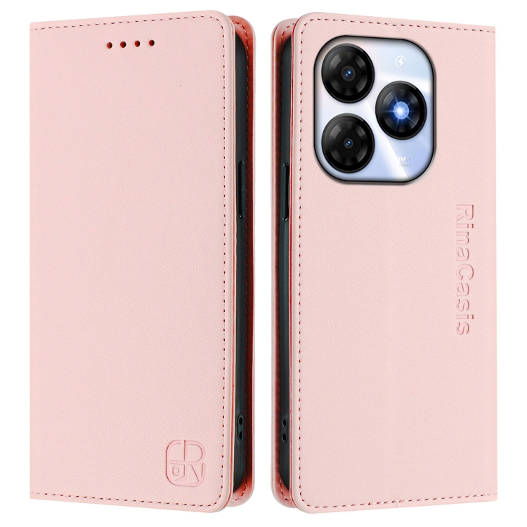 Funda de Cuero Rfid con Doble Pliegue y Succión Magnética para Itel P55 4G/Infinix Smart 8 Rc01 (Rosa)