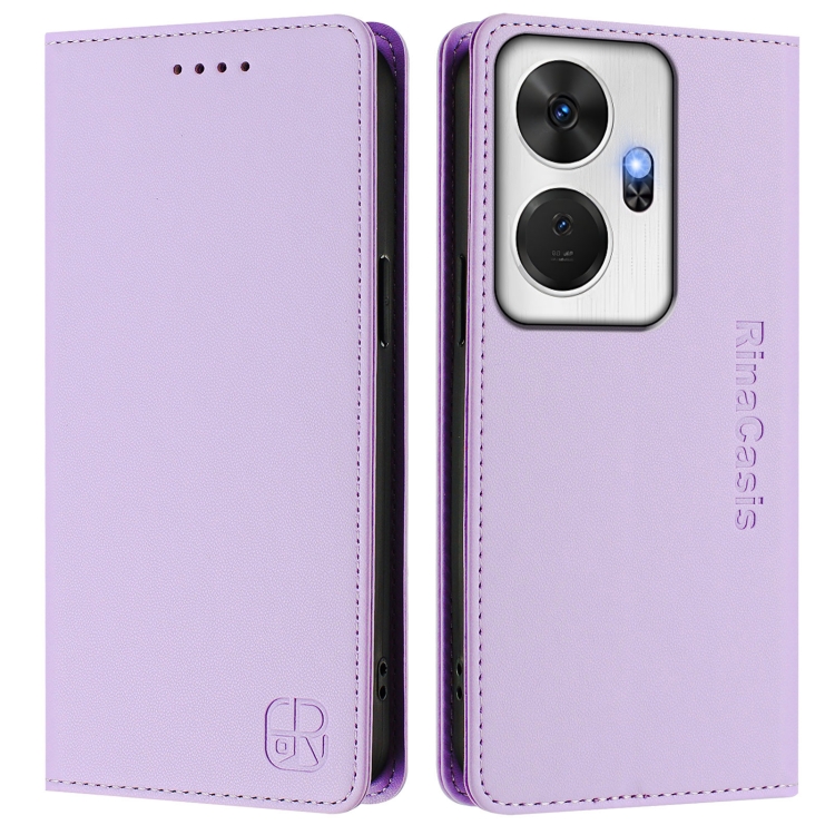 Funda de Cuero Rfid para Teléfono Itel P55+ Rc01 con Doble Pliegue y Succión Magnética (Morado Claro)