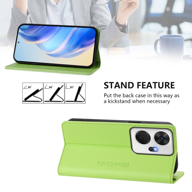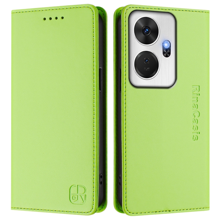 Funda de Cuero Rfid para Teléfono Itel P55+ Rc01 con Doble Pliegue y Succión Magnética (Verde Hierba)
