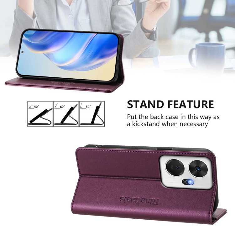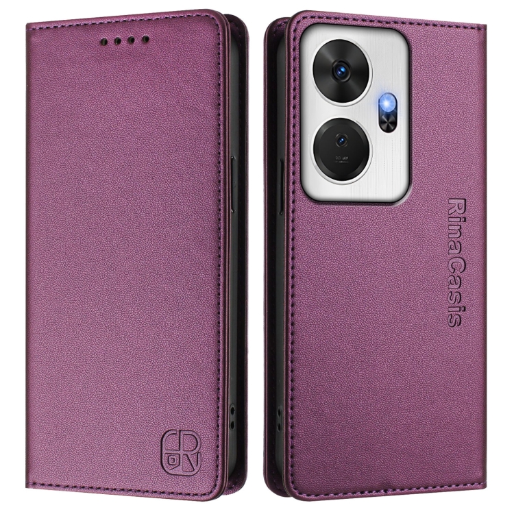 Funda de Cuero Rfid para Teléfono Itel P55+ Rc01 con Doble Pliegue y Succión Magnética (Violeta)