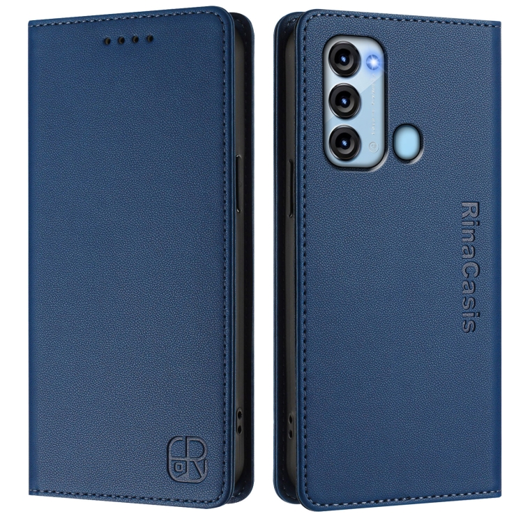 Funda de Cuero RFID con Doble Pliegue y Succión Magnética para Itel S17/S661W/Vision 3 Rc01 (Azul Oscuro)