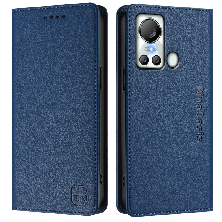 Funda de Cuero RFID con Doble Pliegue y Succión Magnética para Itel S18/Vision 5 Rc01 (Azul Oscuro)