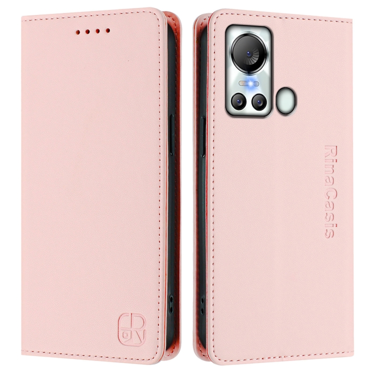 Funda de Cuero Rfid con Doble Pliegue y Succión Magnética para Teléfono Itel S18/Vision 5 Rc01 (Rosa)