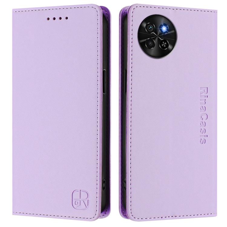 Funda de Cuero Rfid para Teléfono Itel S23/S665L Rc01 con Doble Pliegue y Succión Magnética (Morado Claro)