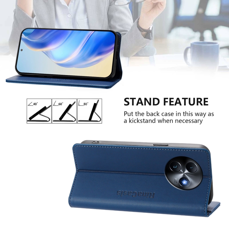 Funda de Cuero Rfid para Teléfono Itel S24 Rc01 con Doble Pliegue y Succión Magnética (Azul Oscuro)
