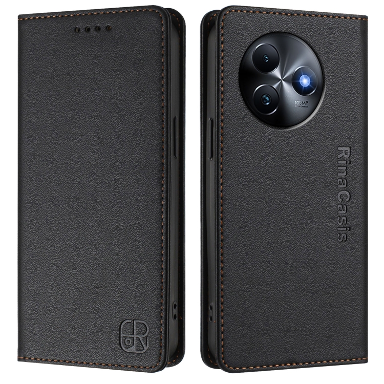 Funda de Cuero Rfid con Doble Pliegue y Succión Magnética para Itel S24 Rc01 (Negra)