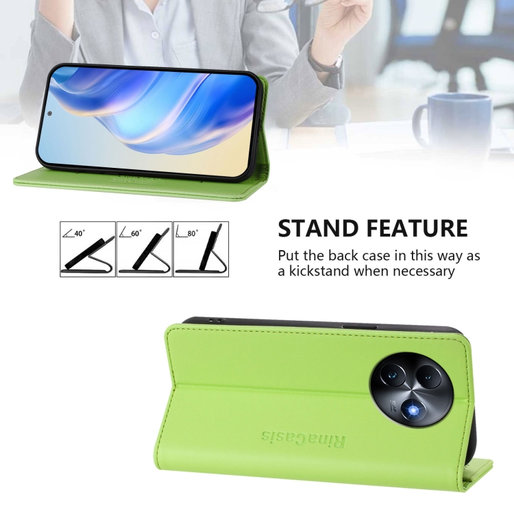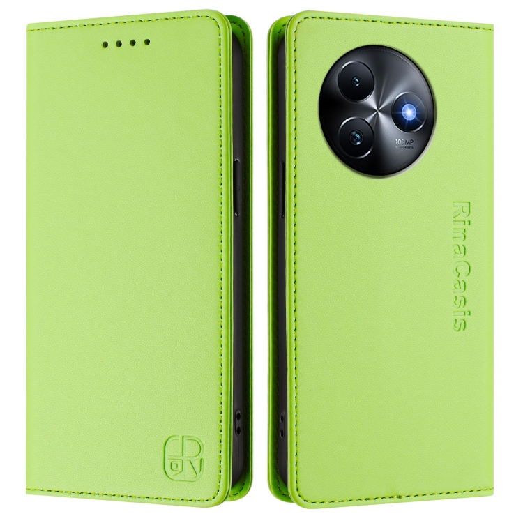 Funda de Cuero Rfid con Doble Pliegue y Succión Magnética para Teléfono Itel S24 Rc01 (Verde Hierba)
