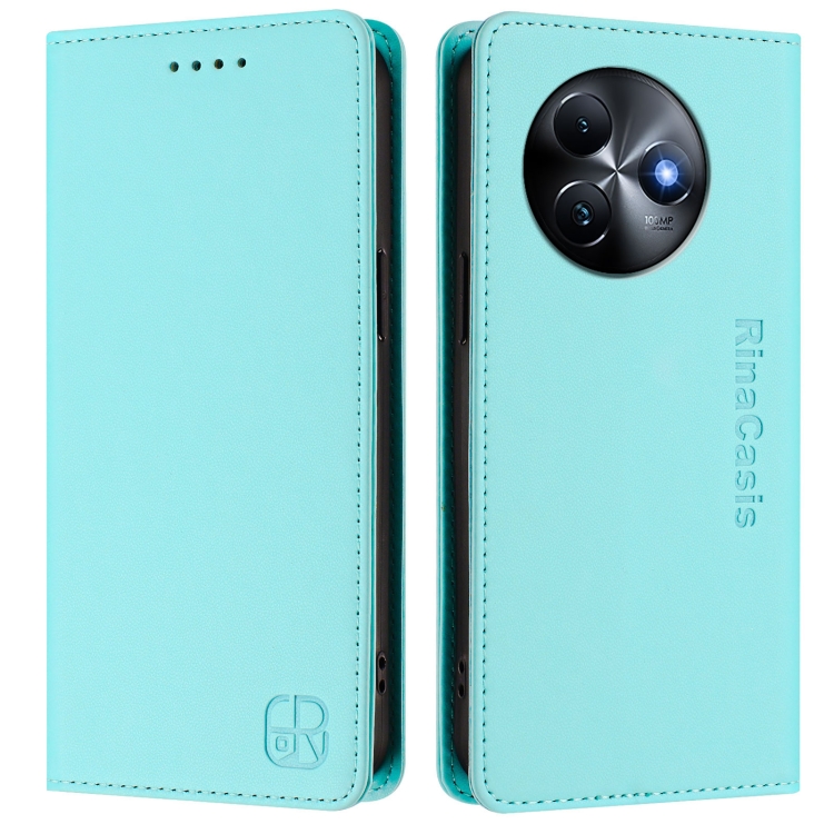 Funda de Cuero Rfid con Doble Pliegue y Succión Magnética para Teléfono Itel S24 Rc01 (Verde Menta)