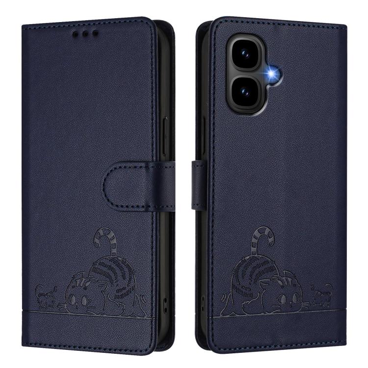 Funda de cuero RFID con estampado de gato y rata en relieve para Infinix Smart 10 4G / Tecno Pop 10 (azul)