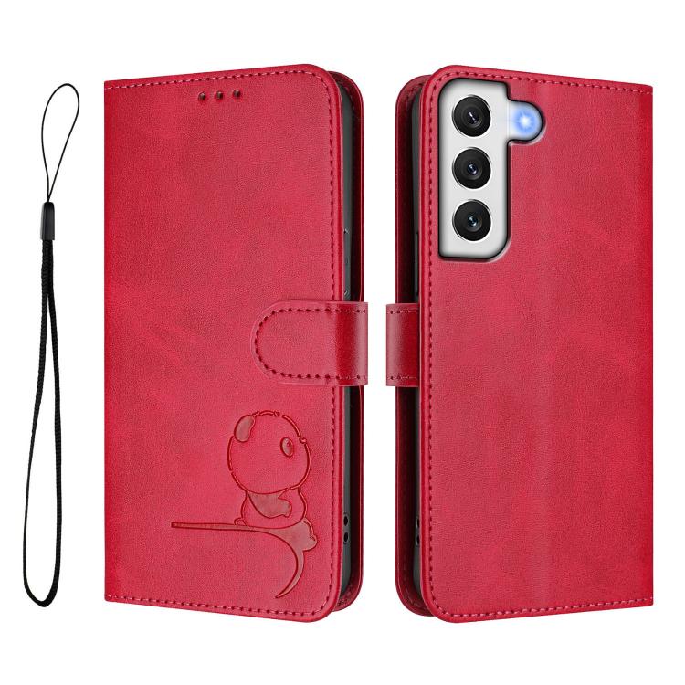 Funda de cuero RFID con estampado de panda para Samsung Galaxy S22 5G con cordón (rosa)