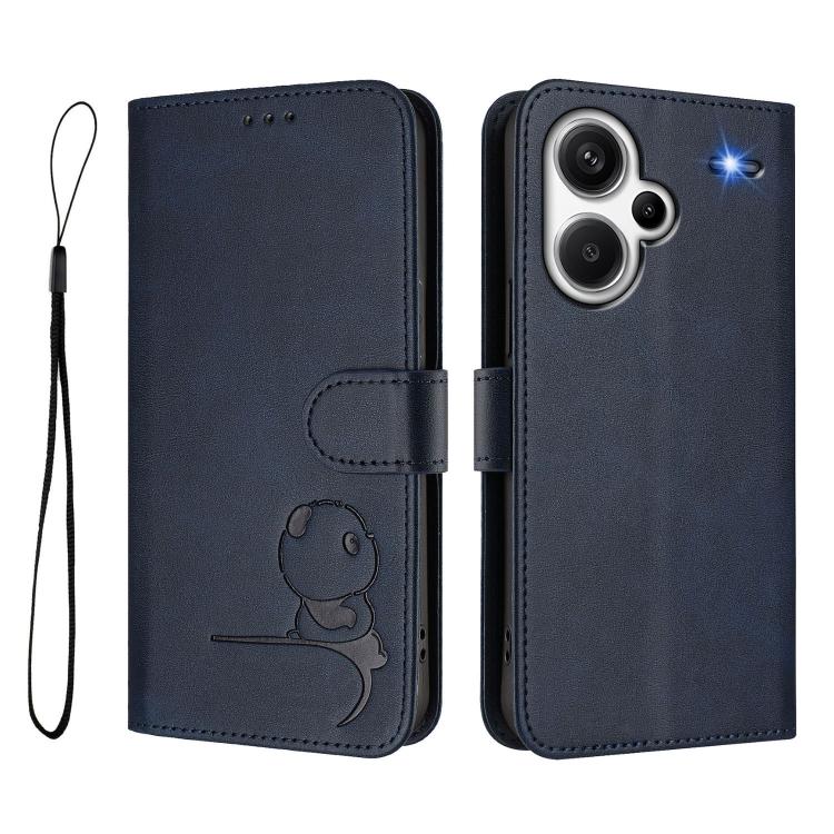 Funda de cuero RFID con estampado de panda y cordón para Redmi Note 13 Pro+ 5G (azul)