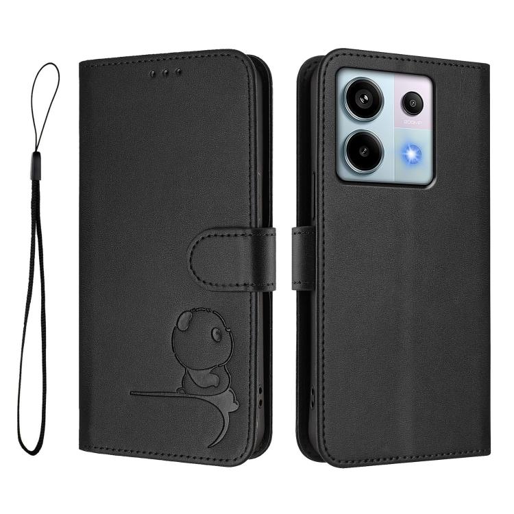 Funda de cuero RFID con estampado de panda y cordón para Redmi Note 13 Pro 5G / Poco X6 (negra)