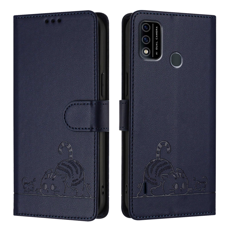 Funda Cuero Rfid con Estampado Rata y Gato para Teléfono Itel A48 con Cordón (Azul)
