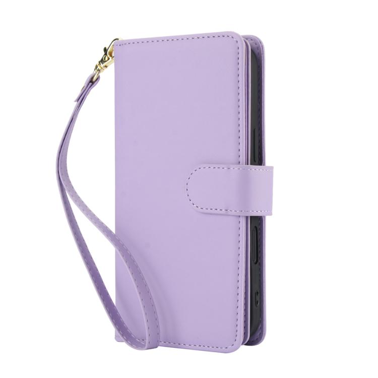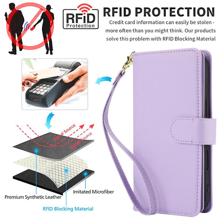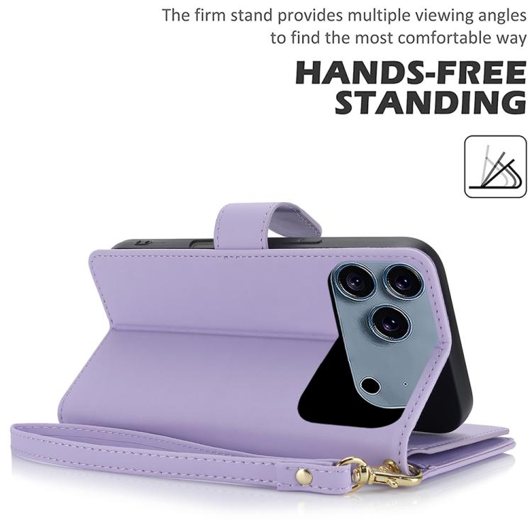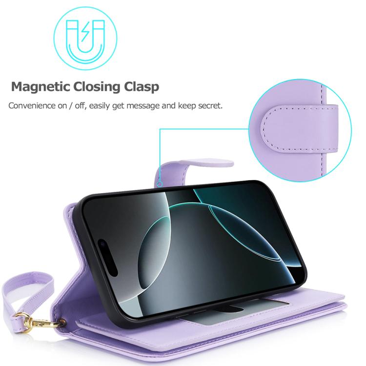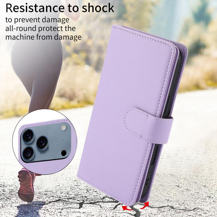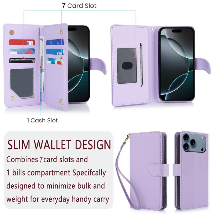 Funda de cuero RFID con múltiples tarjetas para iPhone 17 Pro (morado claro)