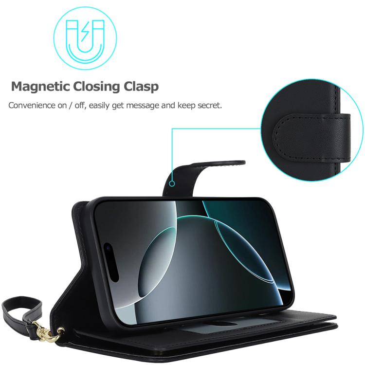 Funda de cuero RFID con múltiples tarjetas para iPhone 17 Pro (negra)