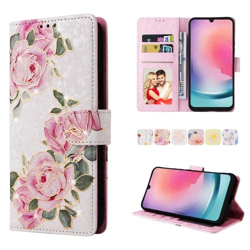 Funda Cuero Rfid Samsung Galaxy A24 5G Pintura Bronceada Flor Rosa