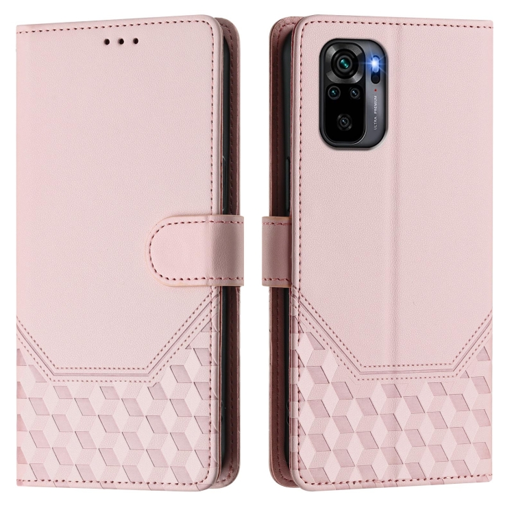 Funda de Cuero Rfid con Relieve de Panal de Abeja para Redmi Note 10 4G / 10S 4G / 11 Se (Rosa)