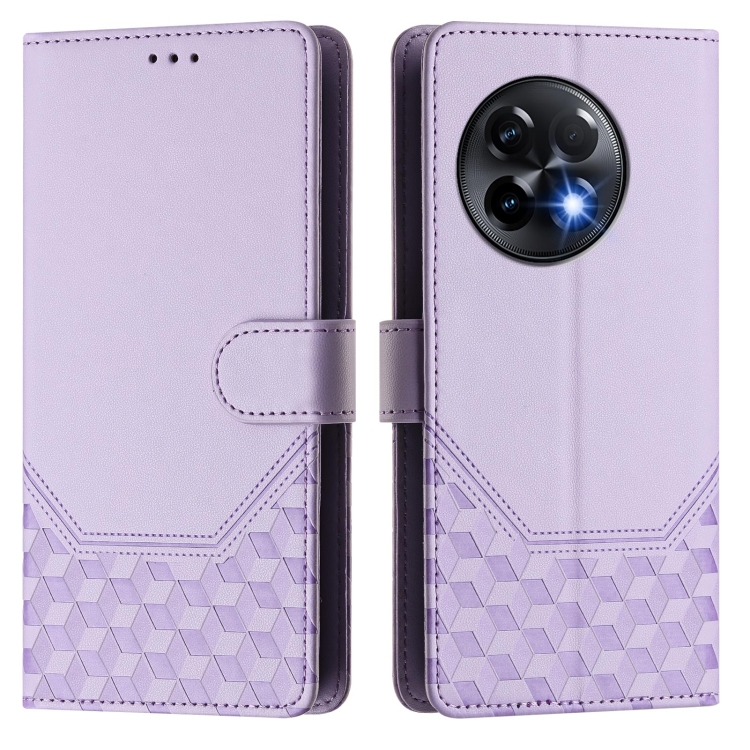 Funda de Cuero Rfid con Relieve de Panal Global para OnePlus 11R 5G (Morado Claro)