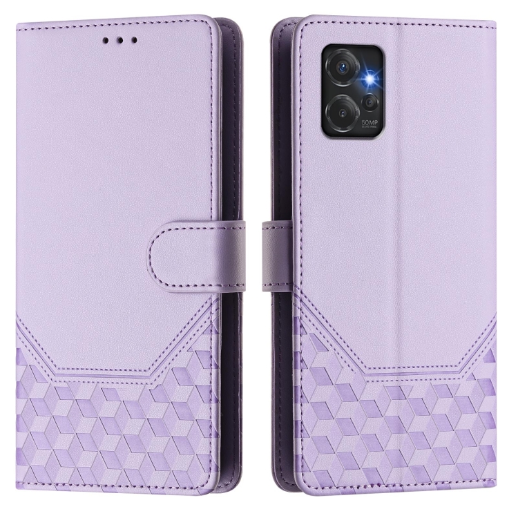 Funda de Cuero Rfid con Relieve de Panal para Motorola Moto G Power 2023 5G (Morado Claro)
