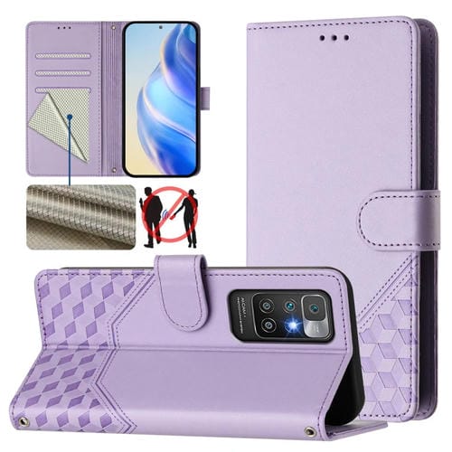 Funda de Cuero Rfid con Relieve de Panal para Redmi 10 2022/2021 (Morado Claro)
