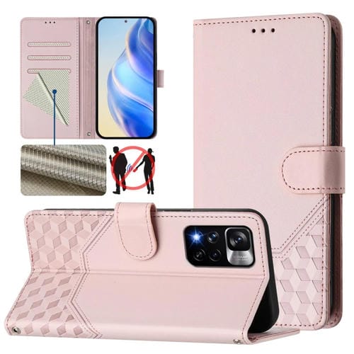 Funda de Cuero Rfid con Relieve de Panal para Redmi Note 11 Pro+ 5G Europa (Rosa)