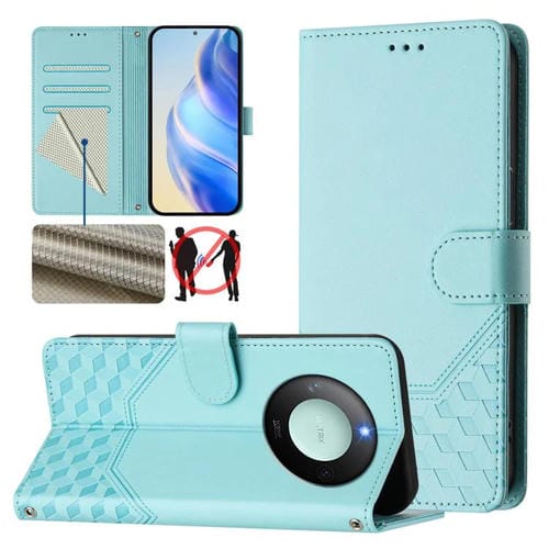 Funda de Cuero Rfid con Relieve de Panal para Honor X9C 5G (Verde Menta)