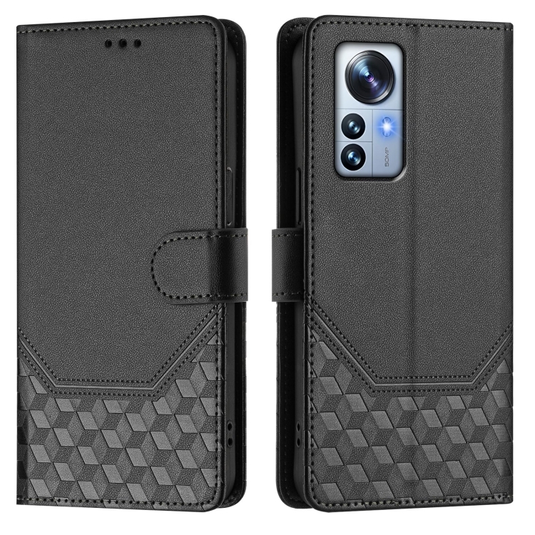 Funda de Cuero Rfid con Relieve de Panal para Xiaomi 12 Pro/12S Pro (Negra)