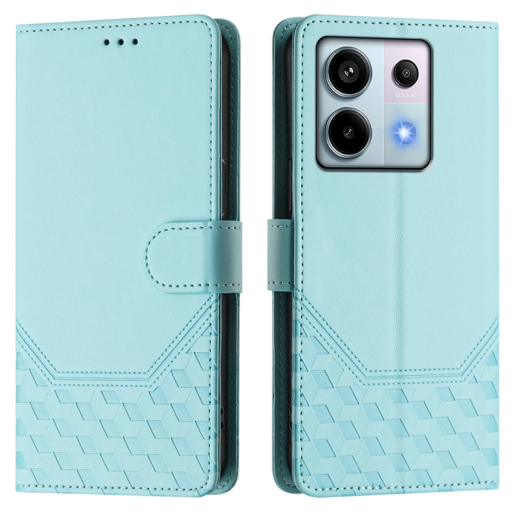 Funda de Cuero Rfid con Relieve de Panal para Xiaomi Poco X6 5G (Verde Menta)