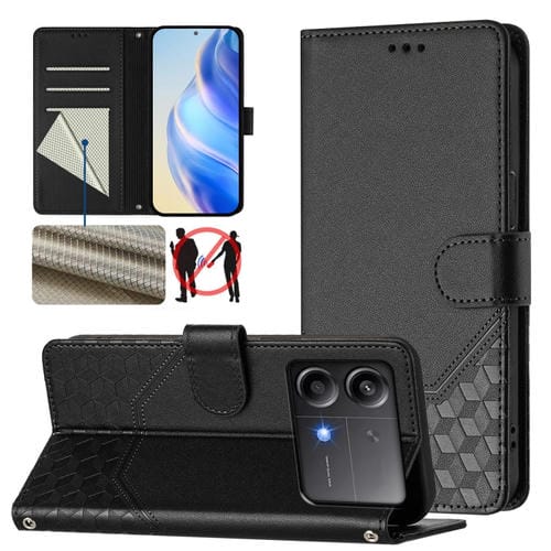 Funda de Cuero Rfid con Relieve de Panal para Xiaomi Poco X6 Neo 5G (Negra)
