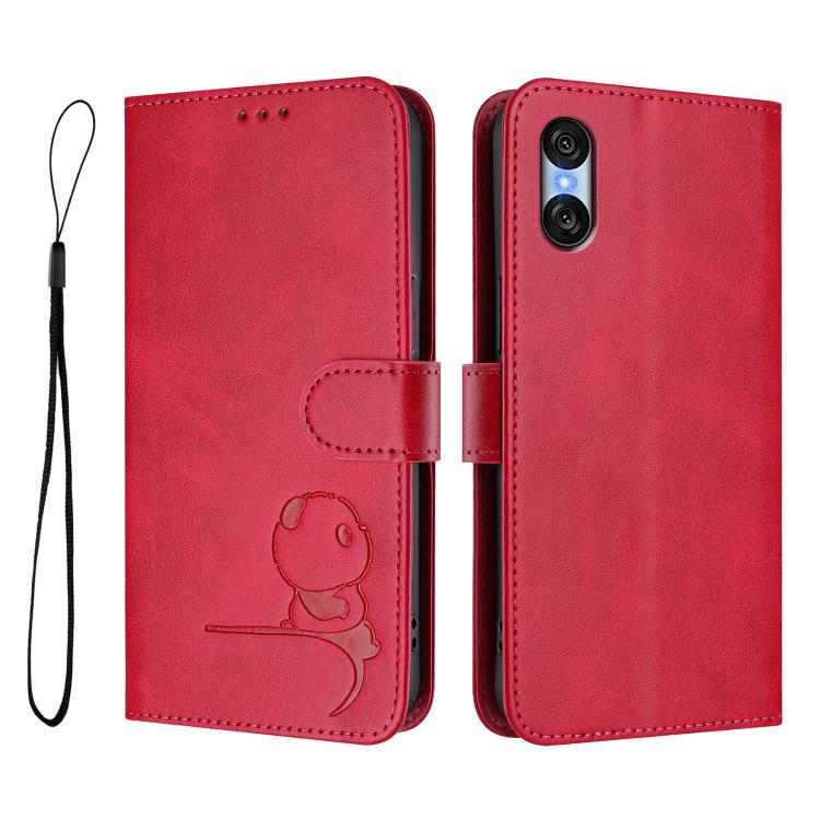 Funda de cuero RFID con relieve de panda para Sony Xperia 10 VI con cordón (rosa)