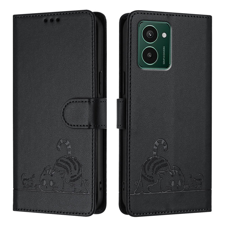 Funda de Cuero Rfid con Relieve de Rata y Gato para Teléfono Hmd Pulse Pro con Cordón (Negro)