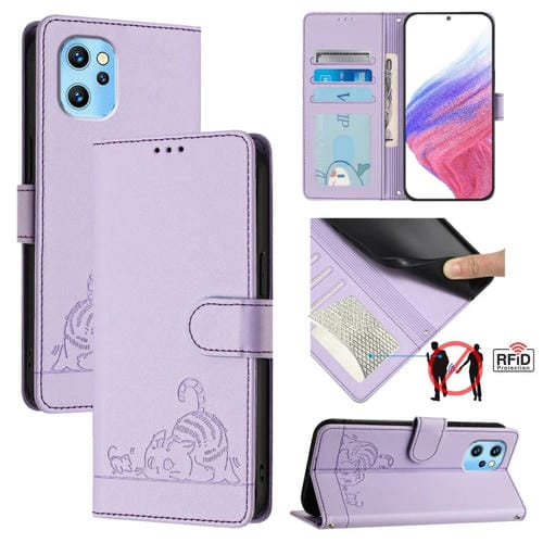 Funda de Cuero Rfid con Relieve de Rata y Gato para Umidigi Power 7 Max con Cordón (Morado)